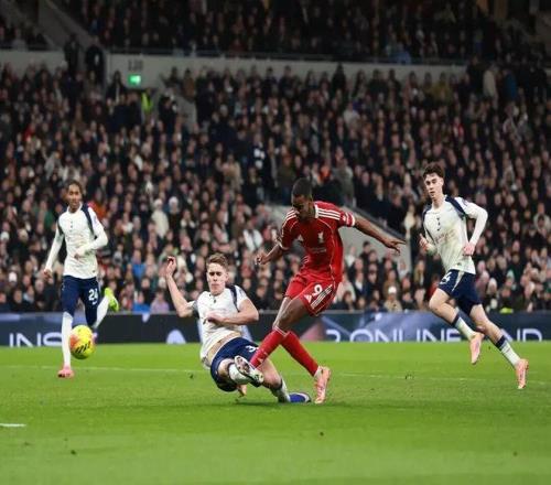 此役,斯洛特在客場排出了4231的單箭頭陣型,狀態火熱的埃基蒂克擔任球隊單箭頭。上半場比賽,布拉德利在與斯彭斯相撞之后曾試圖堅持比賽,但中場休息時還是被伊薩克換下。伊薩克登場之后,受到了熱刺球員的重點照顧。第54分鐘,本坦庫爾曾在禁區前沿踩踏伊薩克大腿內側,導致后者痛苦倒地。經過VAR檢查之后,裁判并未進行任何吹罰。